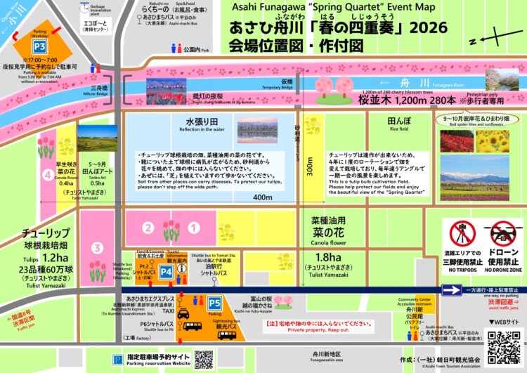 あさひ舟川「春の四重奏」2026 会場位置図・見頃予想