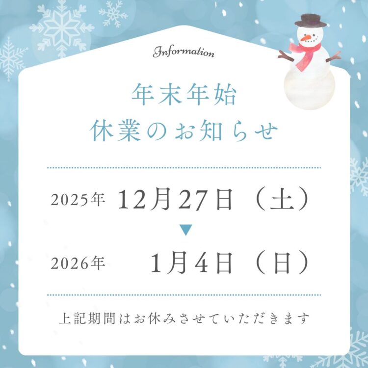 誠に勝手ながら、下記の期間、年末年始休業とさせていただきます。