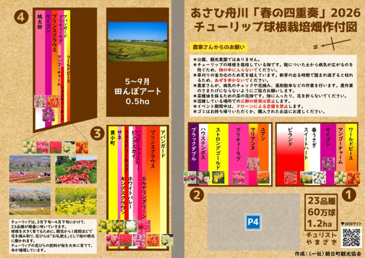 あさひ舟川「春の四重奏」2026 チューリップ球根栽培畑作付図[PDF]