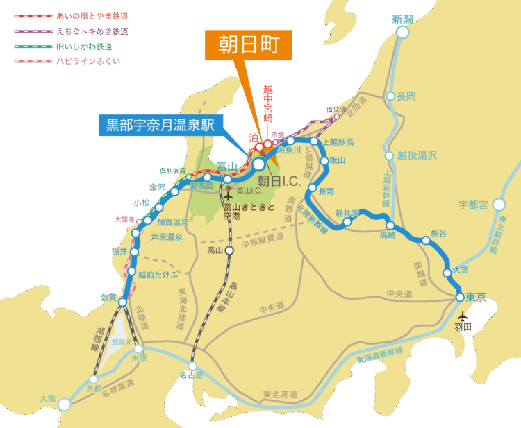 A 北陸自動車道「朝日I.C」が最寄りインターチェンジとなります。