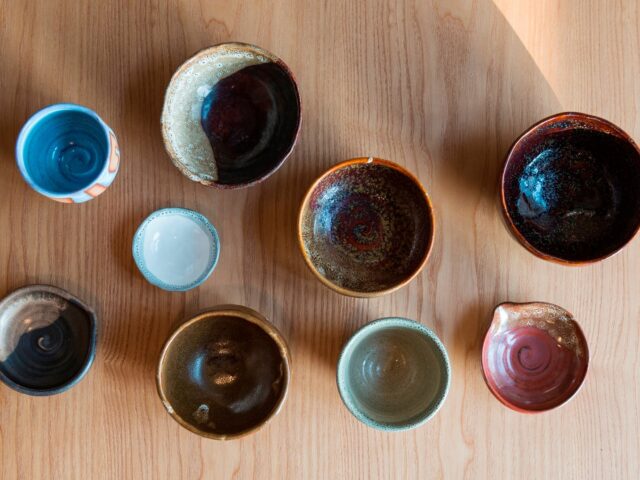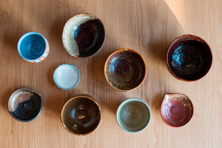 湯呑みや皿など、自由に作陶を楽しめます。小さなお子様でも作れます。