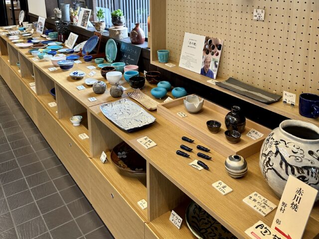 赤川焼として生まれる茶碗や花器は、日々の生活に馴染む素朴な味わいが特徴で、日用品から贈答品まで、手にとる人に喜ばれており、ふるさと美術館のミュージアムショップでお求めいただけます。
