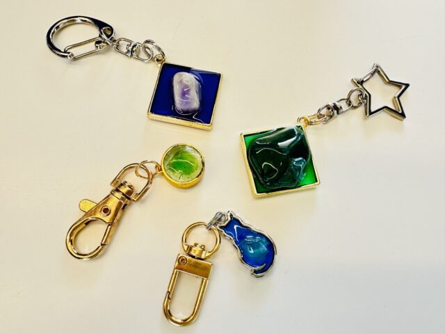 石の小もの工房「Hisui house」でヒスイ海岸の思い出をおみやげに!ヒスイ海岸で見つけた石で、自分だけの宝ものを作れます。好きなキーホルダーの型を選んで、お気に入りの石をレジン液で固めれば完成!小さなお子さんでも体験出来ます。