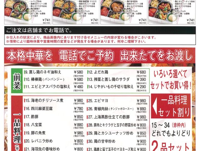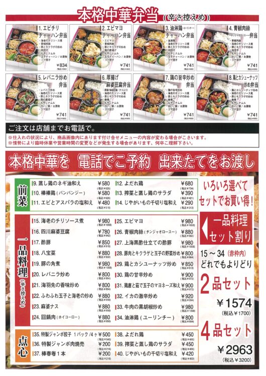 本格中華弁当やオードブル、一品料理のテイクアウト・配達も可能!