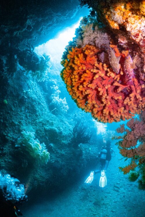富山県内唯一のダイナミックな地形を楽しめる越中宮崎の海は、日本海を代表するダイビングスポット。