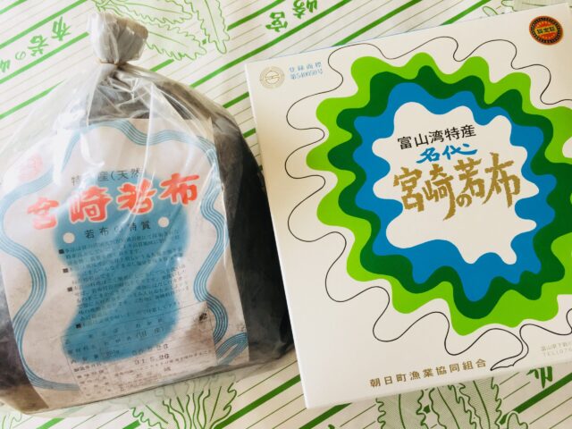 朝日町宮崎の特産品「灰付ワカメ」。