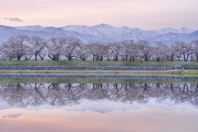田植え準備にはまだ早い4月上旬に、チュリストやまざきさんが田んぼに水を張ってくださって、リフレクション撮影をお楽しみいただけます。